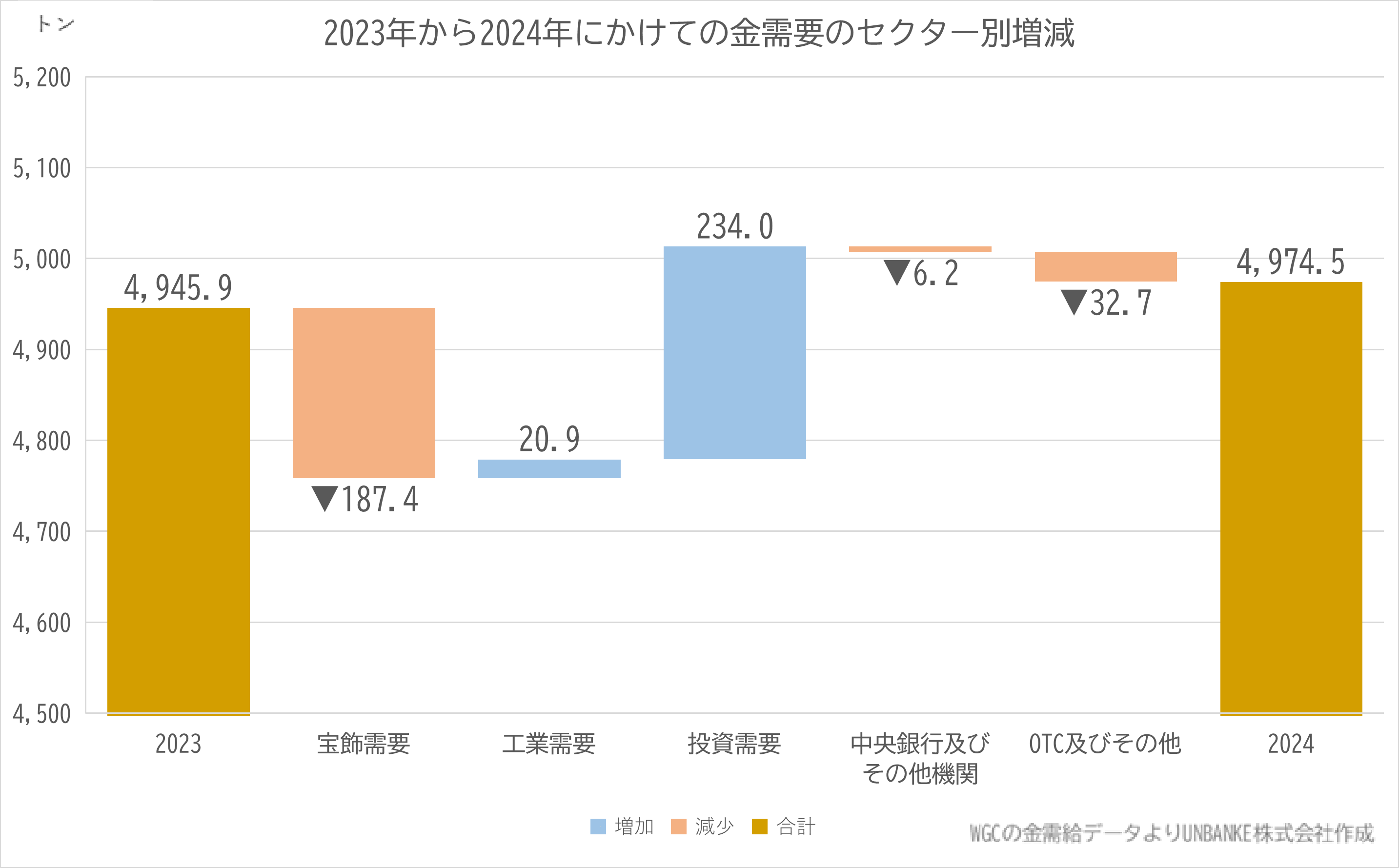 直近5年間の金需給推移表